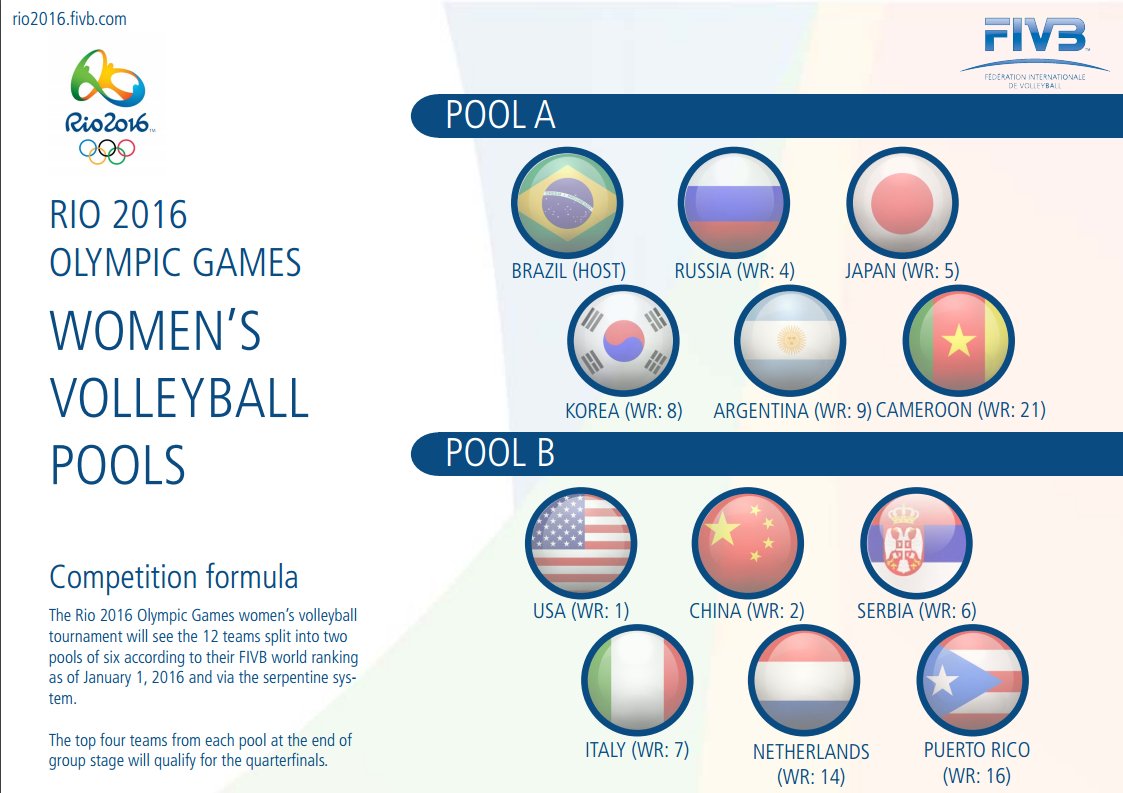 Ці п’ять команд приєналися до сімох учасників Олімпіади, які були відомі до цього – збірних Бразилії, США, Італії, Аргентини, Росії, Єгипту та Куби.